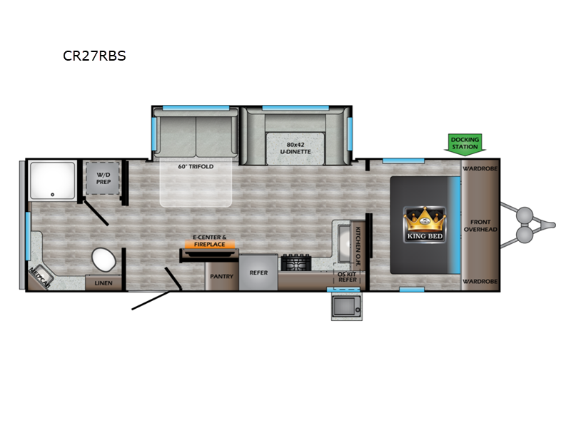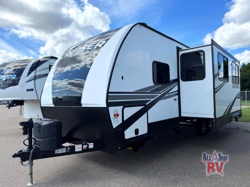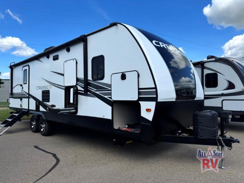 The Cruiser Aire CR27RBS features one slide-out, expanding the living area to create a more open and inviting atmosphere. This model comfortably accommodates up to six people, making it ideal for family trips or outings with friends. The intelligently designed interior includes a well-appointed kitchen, complete with modern appliances and ample storage, ensuring you have everything you need to prepare delicious meals on the road. The cozy sleeping quarters offer restful nights, while the stylish bathroom provides all the conveniences of home.