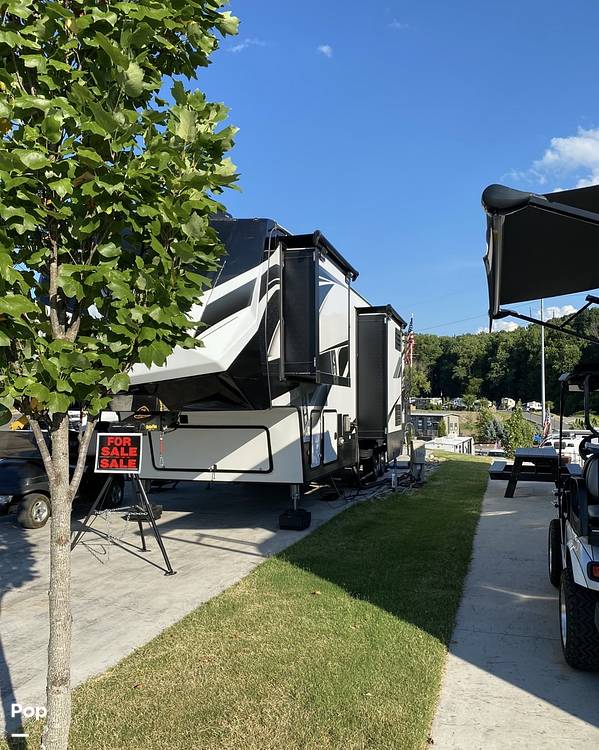 The Dutchmen Voltage 3615 is built with quality and durability in mind, featuring robust construction and high-end finishes. Its advanced climate control system ensures comfort in any weather, while the ample storage compartments cater to all your travel needs. Whether you're embarking on a cross-country journey or a weekend getaway, this Fifth Wheel offers the perfect blend of luxury and practicality. Experience the open road like never before with the 2021 Dutchmen Voltage 3615, where every journey becomes an unforgettable adventure.