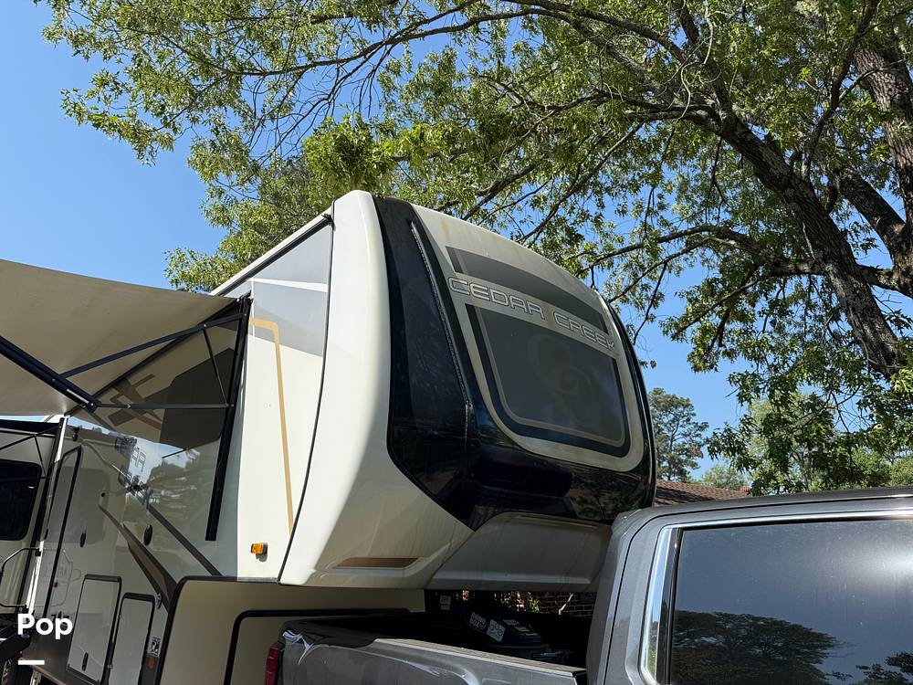 The exterior of this RV is as impressive as its interior, with durable construction and stylish design elements. The Cedar Creek 360 RL is built to withstand the rigors of travel while providing a smooth and stable ride. Additional features include ample storage compartments, making it easy to bring along all your essentials for extended trips. Whether you're planning a weekend getaway or a cross-country adventure, the 2021 Forest River Cedar Creek 360 RL Fifth Wheel offers unparalleled comfort and convenience, ensuring every journey is a memorable one.