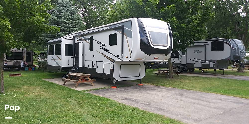 Looking for the perfect home on wheels for your next adventure? Check out this 2021 Forest River Cedar Creek 377BH Fifth Wheel! With a spacious design that comfortably sleeps up to 10 people, this RV is perfect for family trips, group getaways, or just enjoying the open road with all the comforts of home. At 34 feet long, it offers plenty of room for everyone to relax and enjoy.