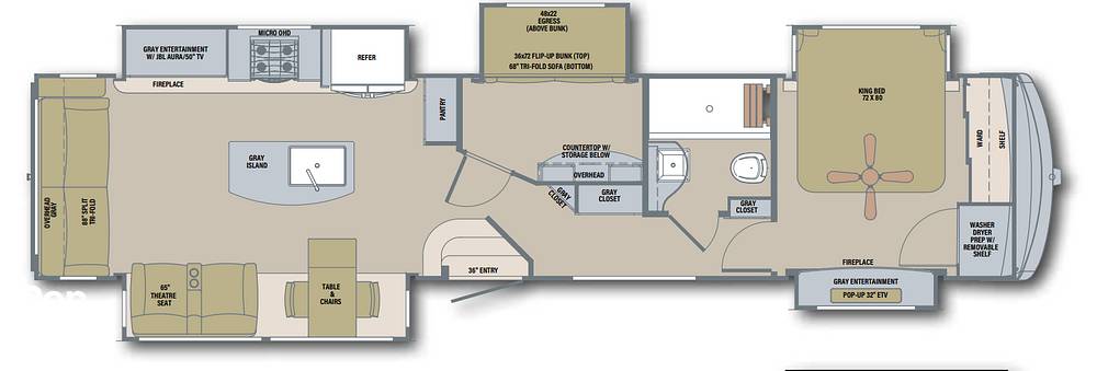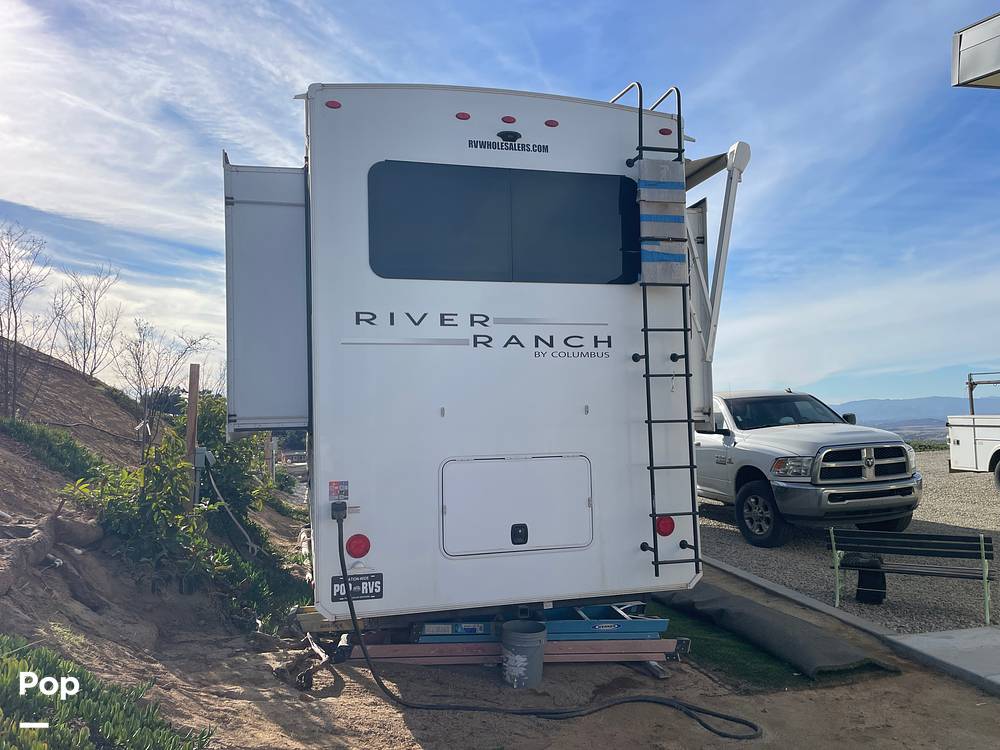Measuring an impressive 35 feet in length, the River Ranch Fifth Wheel is designed to provide ample space for everyone. Inside, you'll find a beautifully appointed living area with plush seating, a fully equipped kitchen with modern appliances, and a cozy dining space perfect for family meals or game nights. The sleeping arrangements are thoughtfully designed to ensure everyone gets a good night's rest, with a master bedroom, bunk beds, and additional convertible sleeping spaces.