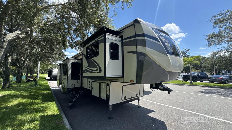 Discover the ultimate in luxury and comfort with the 2021 Forest River Sandpiper 379FLOK Fifth Wheel. This exceptional RV is designed for those who crave adventure without sacrificing the comforts of home. With an impressive length of 36 feet, this spacious haven is perfect for family getaways or extended road trips. Its six slide-outs create an expansive living area, ensuring you have all the room you need to relax and entertain.