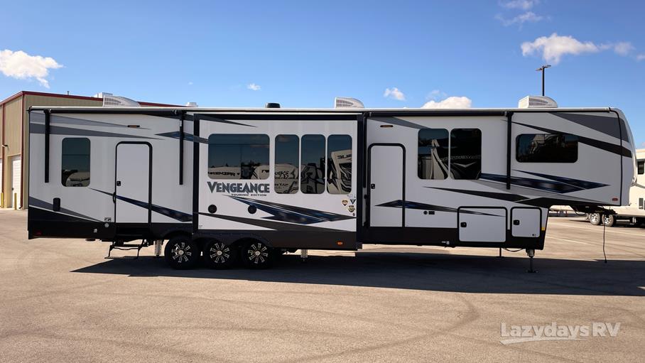 Discover the ultimate blend of luxury and adventure with the 2021 Forest River Vengeance 383G2 Fifth Wheel. This exceptional RV is designed for those who crave the open road without sacrificing the comforts of home. With its impressive length of 38 feet, this spacious haven offers ample room for family and friends, making it the perfect choice for both weekend getaways and extended journeys.