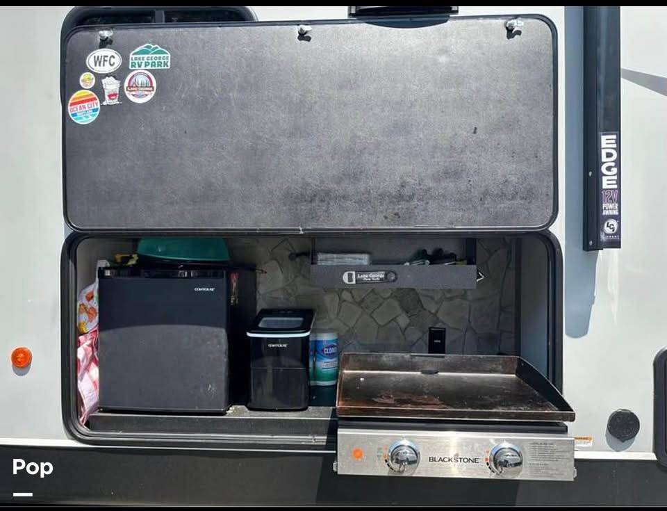 Measuring an impressive 34 feet in length, the Wolf Pack 335 PACK 13 provides ample room for all your travel needs. Inside, you'll find a thoughtfully designed living space featuring modern amenities and high-quality finishes. The well-equipped kitchen boasts a refrigerator, microwave, and stove, making meal preparation a breeze. The cozy living area invites relaxation with plush seating and entertainment options, while the sleeping quarters offer restful retreats after a day of adventure.