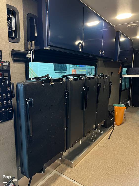 Step inside to discover a thoughtfully designed interior that maximizes space and comfort. The living area is equipped with plush seating and a versatile dining space, perfect for relaxing or entertaining guests. The kitchen is a chef's delight, featuring modern appliances and ample storage, allowing you to prepare meals with ease. The sleeping quarters are designed for restful nights, with comfortable bedding and smart storage solutions to keep your belongings organized. Every detail in this travel trailer has been carefully considered to enhance your travel experience.