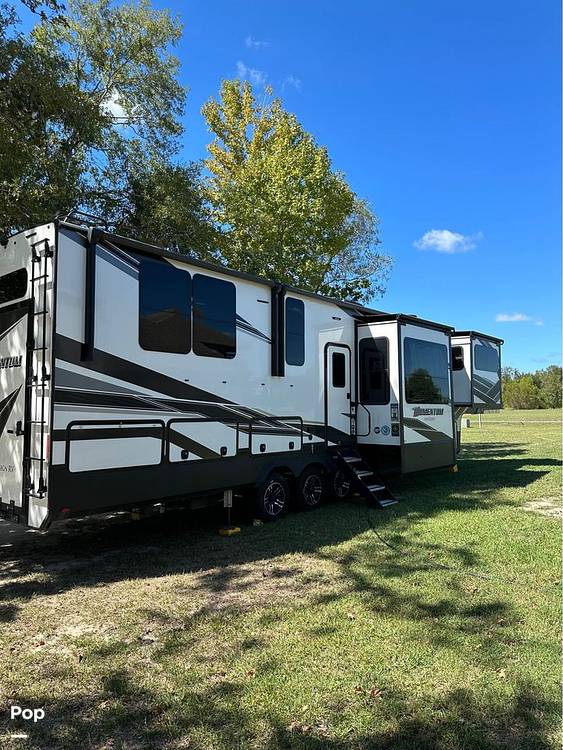 Introducing the 2021 Grand Design Momentum 376THS Fifth Wheel, a luxurious and spacious recreational vehicle designed to elevate your travel experiences. With a length of 34 feet, this meticulously crafted RV offers an exceptional blend of comfort, style, and functionality, making it the perfect choice for families and adventurers alike. Its sleek exterior design is complemented by a robust construction, ensuring durability and reliability on all your journeys.