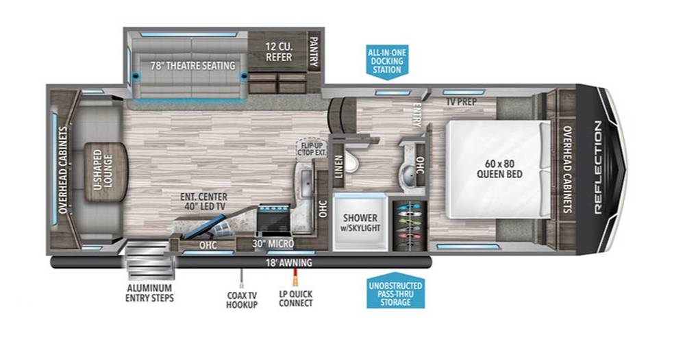 Outside, the Grand Design Reflection boasts a sleek and modern look that will turn heads at any campsite. It's built to last, with high-quality materials and craftsmanship that you can rely on. Whether you're a seasoned RV enthusiast or a first-timer, this fifth wheel is easy to set up and enjoy. So why wait? Hit the road and start making memories with this fantastic RV!