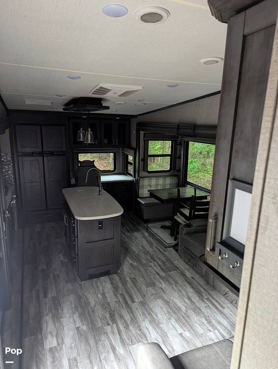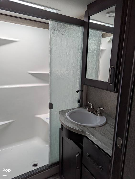 The sleeping arrangements are designed for comfort and convenience, with a master bedroom featuring a cozy queen-size bed, and additional sleeping spaces including convertible sofas and bunks. The bathroom is equipped with a spacious shower and all the necessary amenities to keep you refreshed during your travels. With its sleek design and high-quality construction, the 2021 Grand Design Reflection 320MKS Fifth Wheel is your ticket to exploring the open road in style and comfort. Don't miss the opportunity to own this incredible RV and create unforgettable memories with your loved ones.