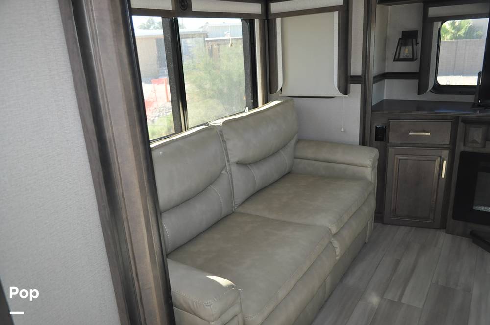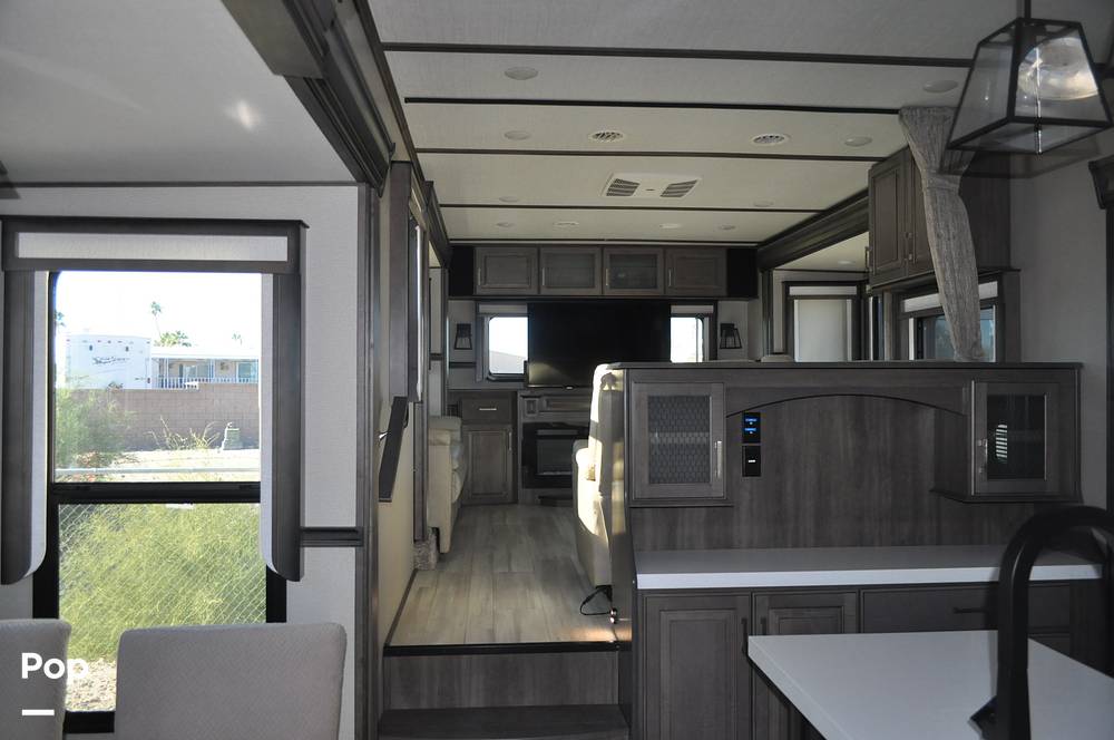 Inside, you'll find a cozy setup that can comfortably sleep up to six people. Perfect for family trips or a getaway with friends, the Solitude 375RES-R offers plenty of room for everyone. The interior is designed with comfort in mind, featuring plush seating, a fully equipped kitchen, and a luxurious bathroom. The living area is perfect for relaxing after a day of exploring, with ample seating and entertainment options to keep everyone happy.