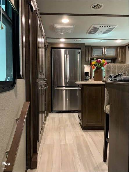 Step inside and you'll find a beautifully designed interior that feels just like home. The kitchen is a chef's dream, featuring modern appliances and ample counter space, making meal prep a breeze. The living area is perfect for kicking back and relaxing, with cozy seating and a large TV for movie nights. Plus, the RV is equipped with plenty of storage space, so you can bring along all your essentials without feeling cramped.