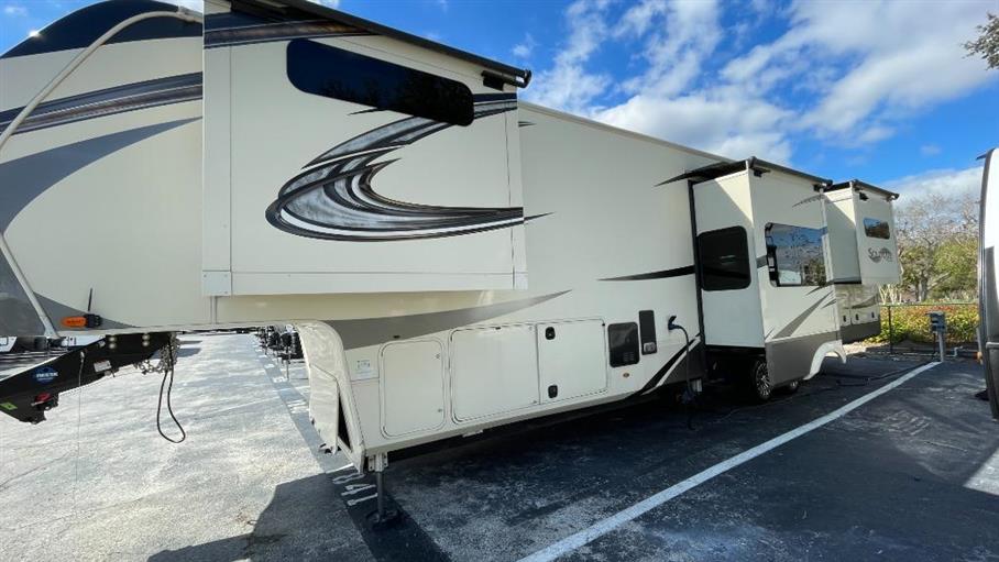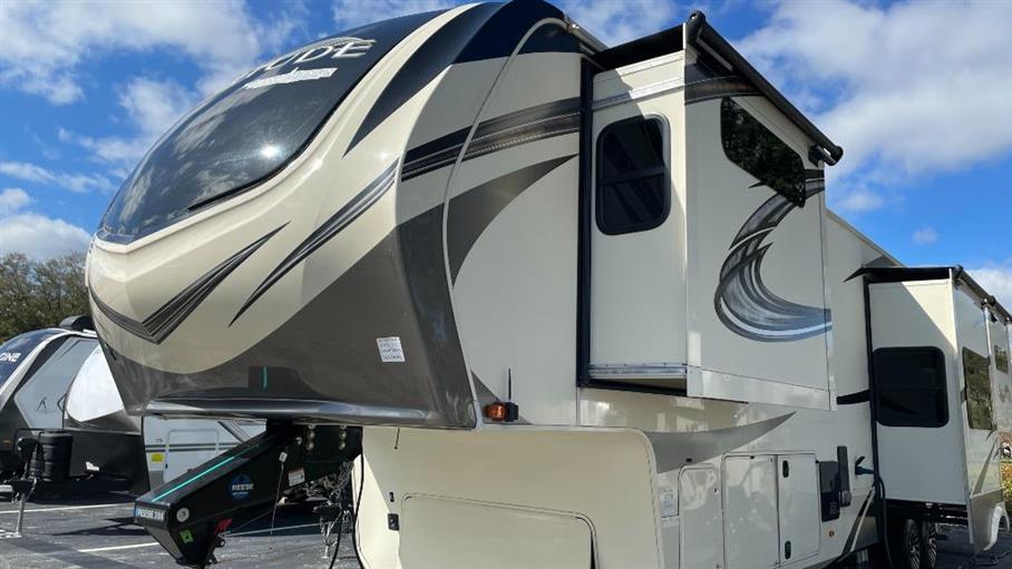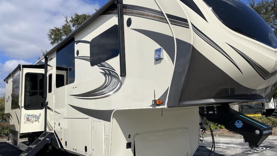 Discover the ultimate in luxury and comfort with the 2021 Grand Design Solitude 390RK Fifth Wheel, your perfect home on wheels! This stunning RV is designed for those who crave adventure without sacrificing the comforts of home. With five spacious slide-outs, this model offers an expansive living area that ensures you and your loved ones have plenty of room to relax and enjoy every moment of your journey.