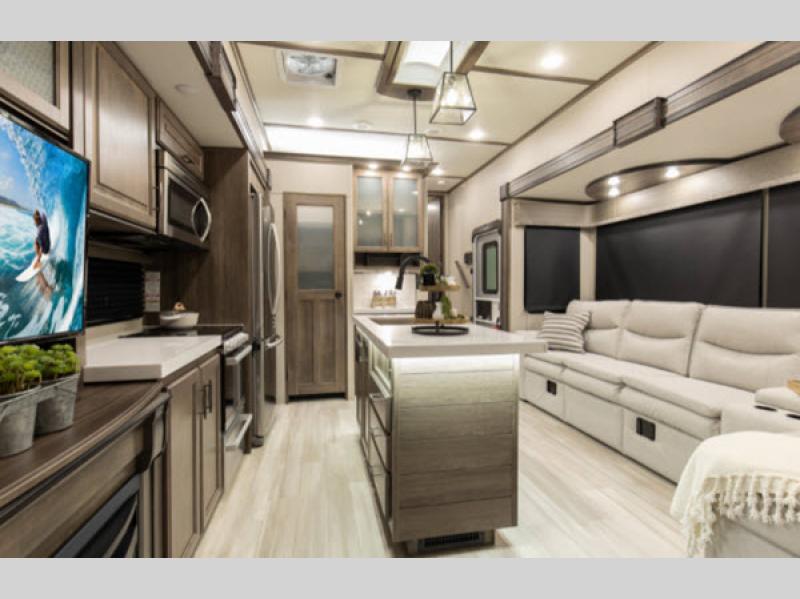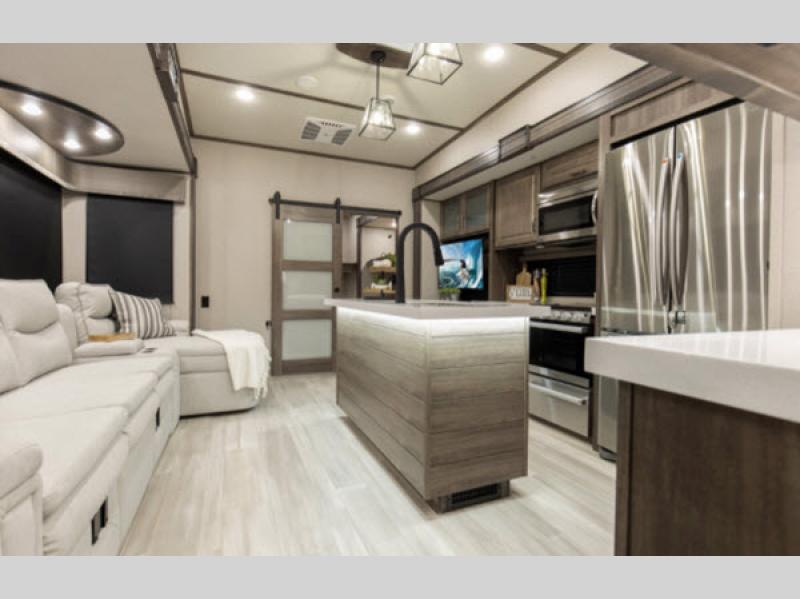 Looking for the perfect home on wheels for your next adventure? Check out this 2021 Grand Design Solitude S-Class 3740BH Fifth Wheel! With its spacious design and top-notch features, this RV is ready to make your travels comfortable and memorable. Measuring a generous 33 feet in length, this beauty offers plenty of room for the whole family or a group of friends. Plus, with four slide-outs, you’ll have all the space you need to relax and enjoy your time on the road.