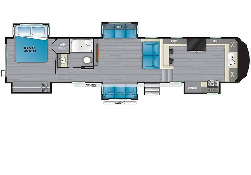 Measuring an impressive 36 feet in length, the Heartland Big Country provides ample space for everyone to relax and enjoy. Inside, you'll find a beautifully designed interior with modern amenities. The fully equipped kitchen is a chef's dream, featuring top-of-the-line appliances and plenty of counter space for meal prep. The cozy living area is perfect for unwinding after a day of adventure, with plush seating and a large entertainment center. The sleeping quarters are equally inviting, with a luxurious master bedroom and additional sleeping spaces to accommodate your entire crew.