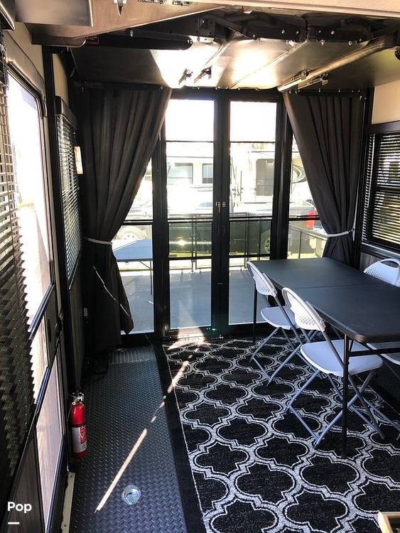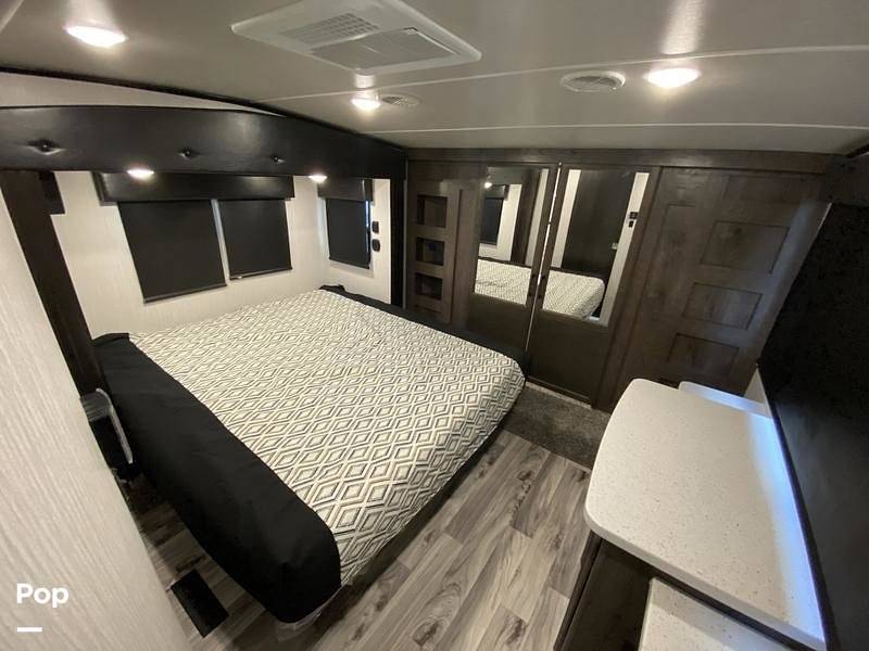 Step inside and be greeted by a modern and stylish interior that feels just like home. The Cyclone 4006 boasts a well-equipped kitchen with all the essentials, including a refrigerator, stove, and microwave, making meal prep a breeze. The living area is perfect for unwinding, featuring comfortable seating and a large TV for entertainment. With plenty of storage throughout, you can bring along all your favorite gear and essentials without feeling cramped.