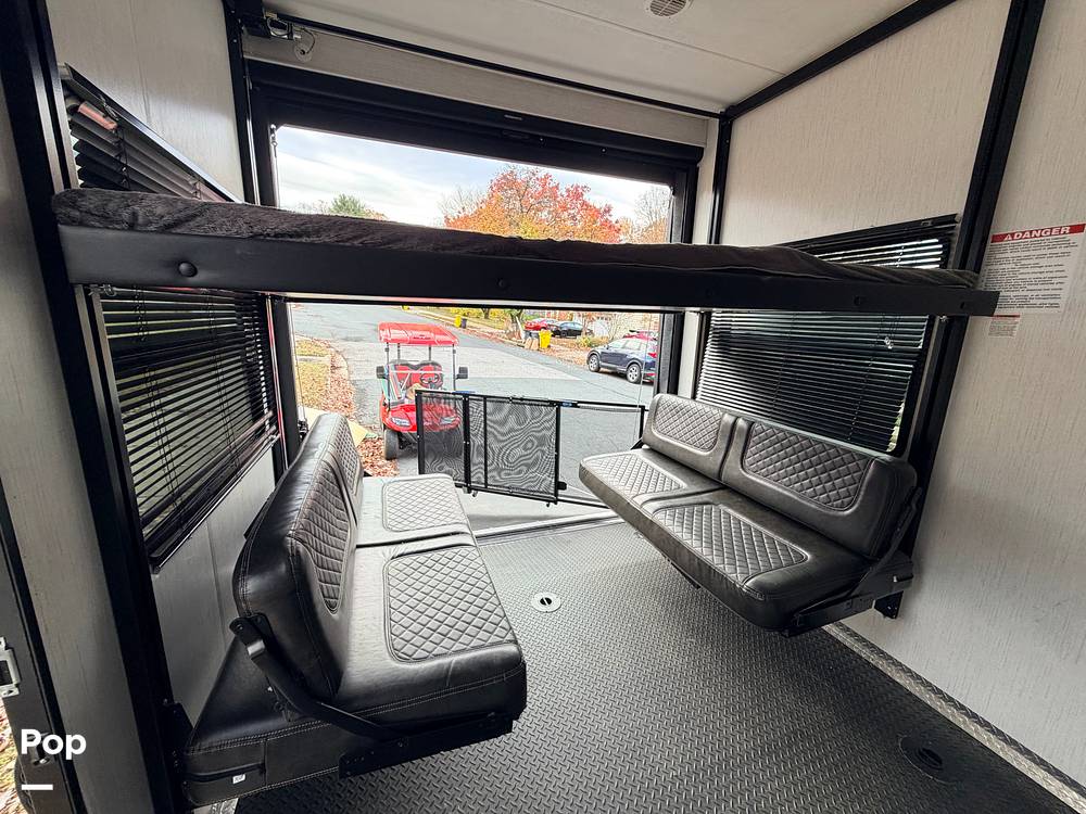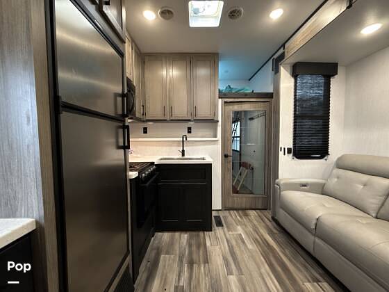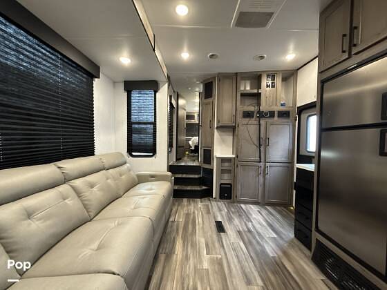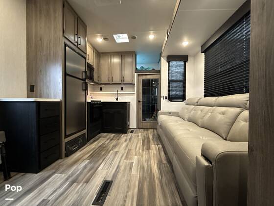 The Heartland Gravity 3210 boasts a meticulously crafted interior, featuring high-quality finishes and modern amenities. The living area is designed to maximize comfort, with plush seating and a state-of-the-art entertainment system, perfect for unwinding after a day of exploration. The kitchen is equipped with top-of-the-line appliances, ample storage, and a spacious dining area, making meal preparation and dining a delightful experience. The sleeping quarters are thoughtfully arranged to provide privacy and tranquility, ensuring a restful night's sleep for all occupants.