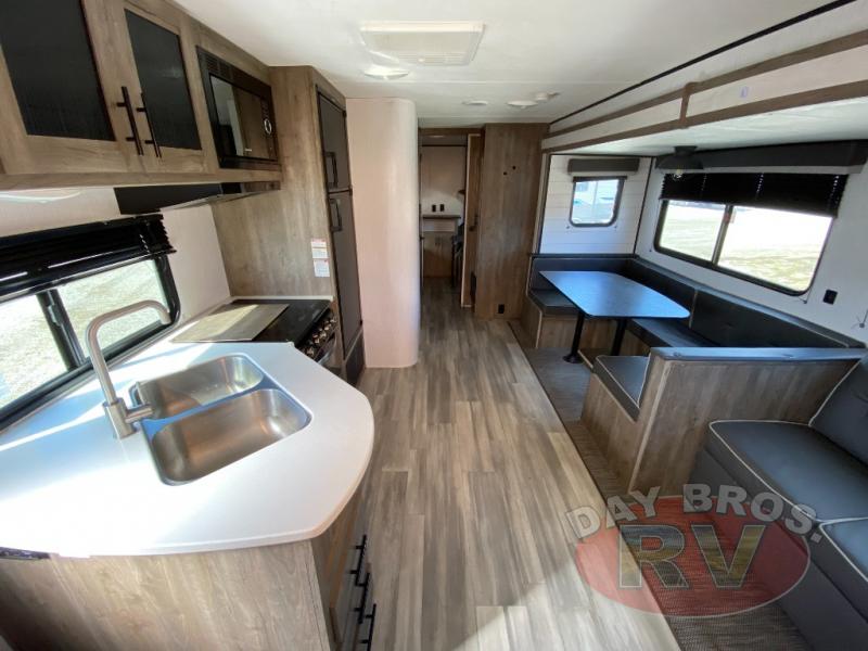 The Heartland Pioneer QB 300 features a single slide-out that expands your living space, providing a roomy and comfortable environment for relaxation and entertainment. Inside, you'll find sleeping arrangements for up to nine people, ensuring everyone has a cozy place to rest after a day of exploration. The thoughtfully designed interior includes a well-equipped kitchen, a spacious dining area, and a comfortable living space, making it easy to enjoy home-cooked meals and quality time with loved ones on the road.