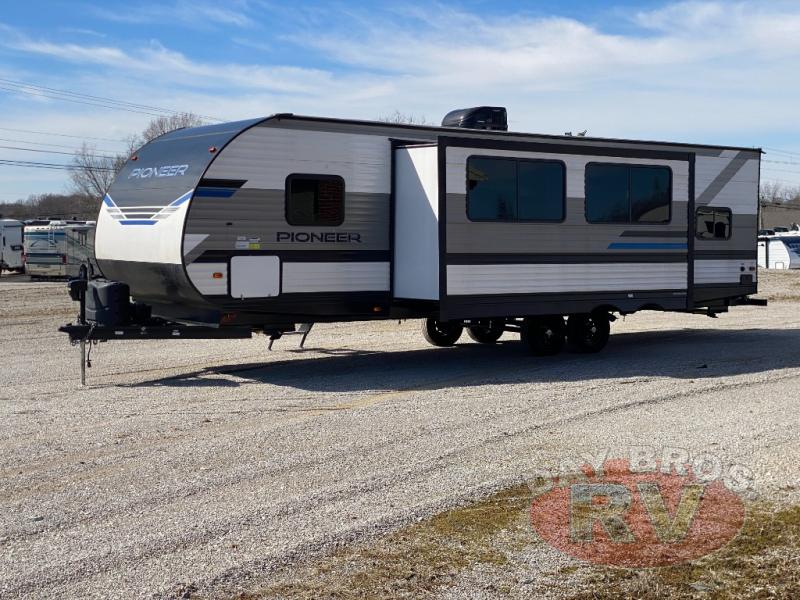 Discover the perfect blend of comfort and adventure with the 2021 Heartland Pioneer QB 300 Travel Trailer. This exceptional RV is designed to accommodate your entire family or group of friends, offering ample space and modern amenities for a memorable travel experience. With a length of 29 feet and a weight of 3,131 kilograms, this travel trailer is both spacious and easy to tow, making it an ideal choice for both seasoned travelers and RV newcomers.