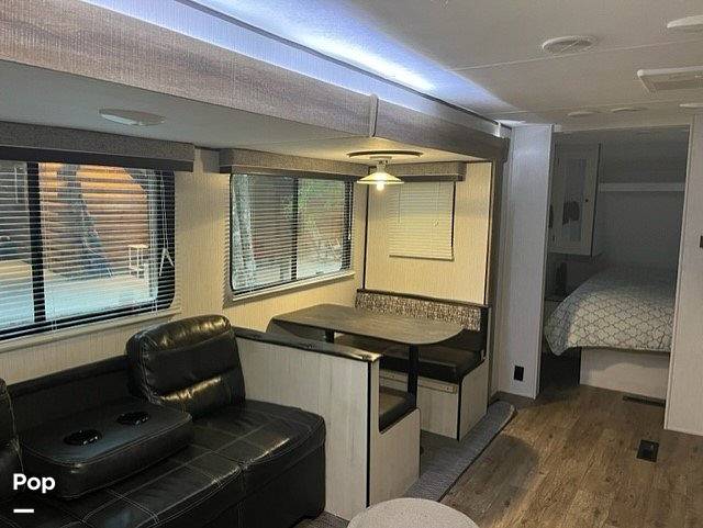 Step inside to find a thoughtfully laid-out interior that maximizes space and functionality. The Trail Runner features a cozy sleeping arrangement, including a private master bedroom with a queen-sized bed, a convertible dinette, and a comfortable sofa bed. The fully equipped kitchen boasts modern appliances, including a refrigerator, microwave, and three-burner stove, ensuring you can prepare delicious meals on the go. The spacious bathroom provides a large shower and plenty of storage, adding to the convenience of your travels.