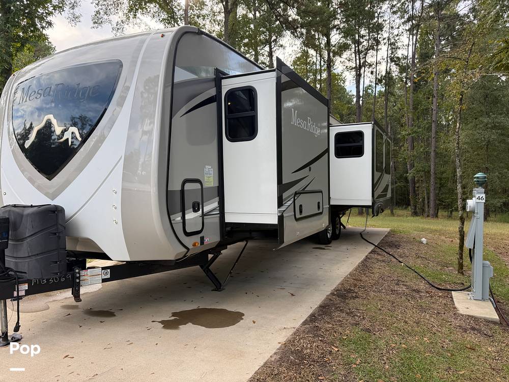 The sleeping quarters are designed with your comfort in mind, featuring a luxurious queen-sized bed and additional sleeping accommodations for two more guests. The bathroom is equipped with a full-sized shower, sink, and toilet, ensuring all the conveniences of home are at your fingertips. With its robust construction and attention to detail, the 2021 Highland Ridge Mesa Ridge 322RLS Travel Trailer is not just a vehicle, but a gateway to unforgettable experiences. Embrace the freedom of the open road and create lasting memories with this exceptional travel trailer.