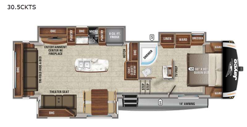 The Jayco Eagle HT 30.5CKTS features three slide-outs, expanding your living space to create a welcoming environment for up to four occupants. Whether you're traveling with family or friends, this RV offers the perfect blend of privacy and togetherness. The thoughtfully designed interior includes a well-appointed kitchen, a cozy living area, and a comfortable sleeping arrangement, ensuring that you have all the comforts of home while on the road. The high-quality finishes and attention to detail are evident throughout, making this RV a true standout in its class.