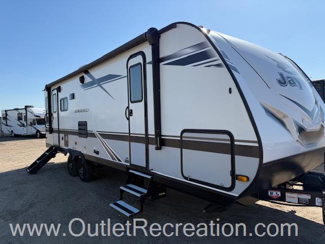 Measuring 26 feet in length, the Jay Feather 27RL is compact enough for easy towing yet spacious enough to accommodate up to five sleepers comfortably. The single slide-out expands your living space, creating a welcoming environment for relaxation and entertainment. Inside, you'll find a well-appointed kitchen with modern appliances, a cozy dinette, and a plush seating area perfect for unwinding after a day of exploration. The smart layout ensures everyone has their own space, making it ideal for families or small groups.