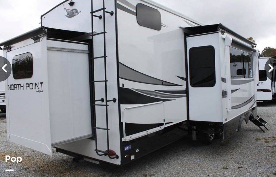 Discover the ultimate in luxury and comfort with the 2021 Jayco North Point 373BHOK Fifth Wheel, a perfect blend of elegance and practicality for your next adventure. This stunning RV, measuring an impressive 33 feet in length, is designed to accommodate up to seven people, making it ideal for family trips or getaways with friends. With its spacious layout and top-of-the-line amenities, the North Point 373BHOK ensures that every journey is as enjoyable as the destination.