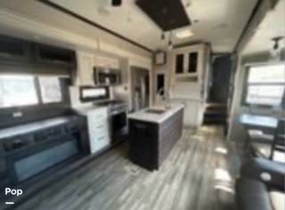Step inside and be greeted by a beautifully appointed interior featuring high-quality furnishings and thoughtful design. The living area is equipped with plush seating and a state-of-the-art entertainment system, creating a cozy atmosphere for relaxation. The fully equipped kitchen boasts modern appliances, ample counter space, and a dining area that makes meal preparation and dining a pleasure. The RV's sleeping quarters include a master bedroom with a comfortable queen-sized bed, a bunkhouse that sleeps three, and additional sleeping options in the living area, ensuring everyone has a restful night's sleep.