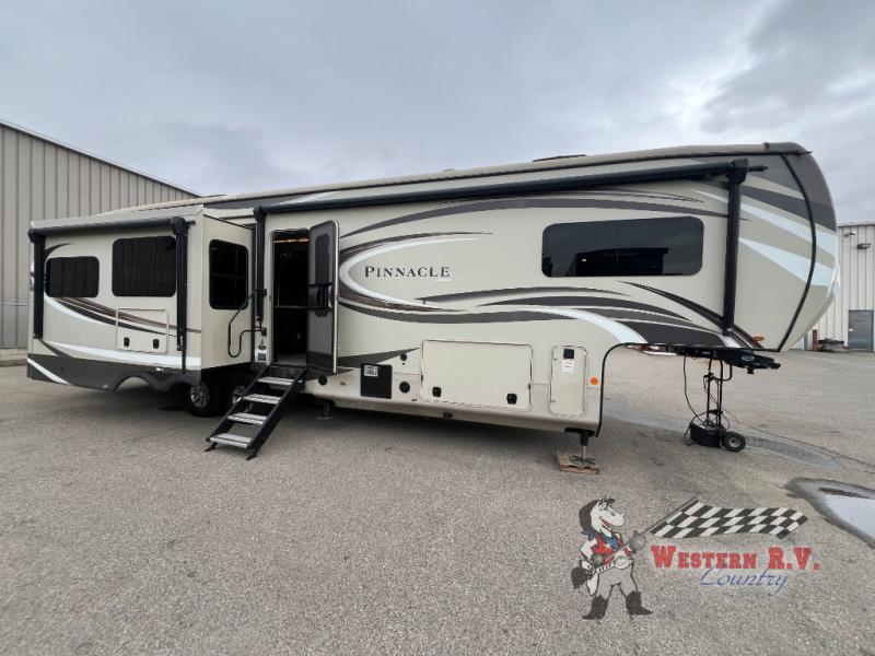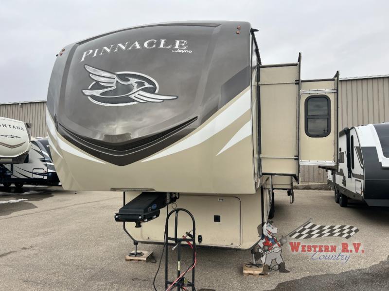 Discover the ultimate in luxury and comfort with the 2021 Jayco Pinnacle 36SSWS Fifth Wheel, a masterpiece of design and functionality. This stunning RV, measuring an impressive 33 feet in length, is the perfect choice for those who crave adventure without sacrificing the comforts of home. With three spacious slide-outs, this model offers an expansive living area that ensures you and your loved ones can relax and enjoy every moment on the road.