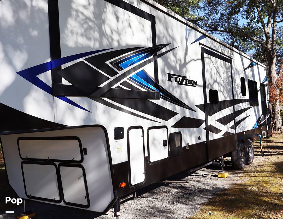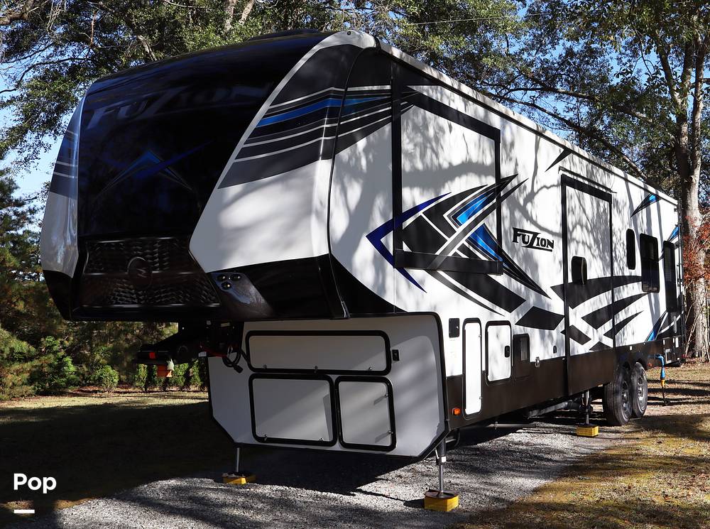 Introducing the 2021 Keystone Fuzion 373 Fifth Wheel, a premium RV designed for those who seek adventure without compromising on comfort. This exceptional vehicle offers a spacious and versatile living space, perfect for families or groups, as it comfortably sleeps up to eight people. With its robust construction and modern amenities, the Fuzion 373 is your ideal companion for both short getaways and extended journeys.