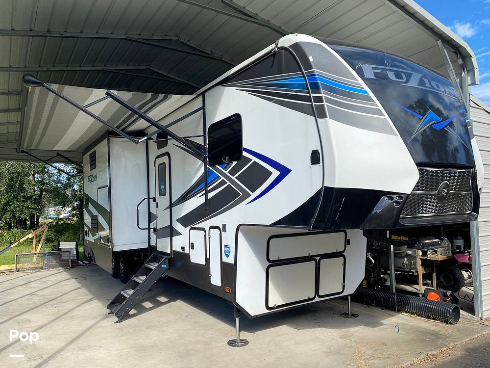 Outside, the Keystone Fuzion 379 is built for adventure, featuring durable construction and ample storage for all your gear. The exterior includes an awning for shade and relaxation, making it perfect for outdoor gatherings or simply enjoying the scenery. Whether you're hitting the open road or setting up camp, this RV is designed to provide a seamless and enjoyable experience. Don't miss the opportunity to own this exceptional fifth wheel that combines comfort, style, and practicality for all your travel needs.