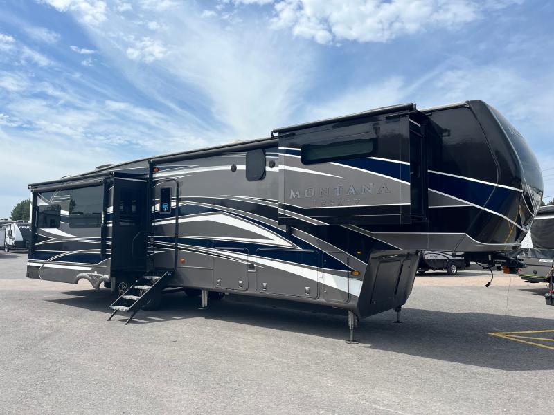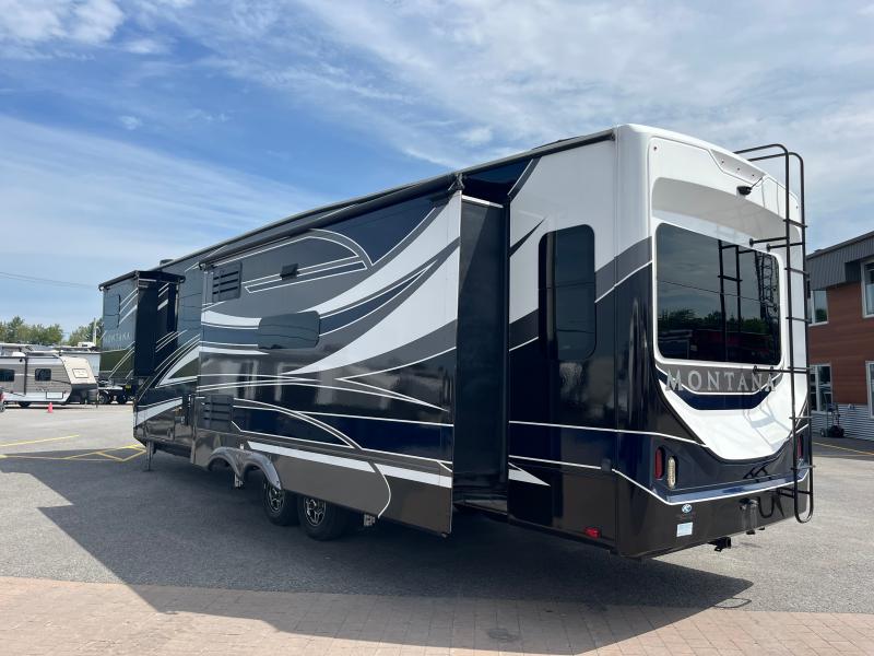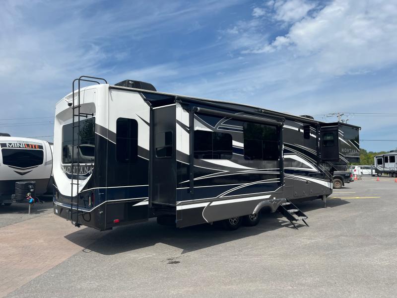 The Keystone Montana Legacy 3781RL also offers a luxurious master suite with a king-sized bed, ample storage, and an en-suite bathroom complete with a large shower and premium fixtures. Additional features include a second bathroom, a washer and dryer, and climate control systems to ensure comfort in any weather. With its robust construction and advanced safety features, this fifth wheel promises a smooth and secure journey. Experience the ultimate in RV living with the Keystone Montana Legacy 3781RL, where every detail is designed to enhance your travel lifestyle.