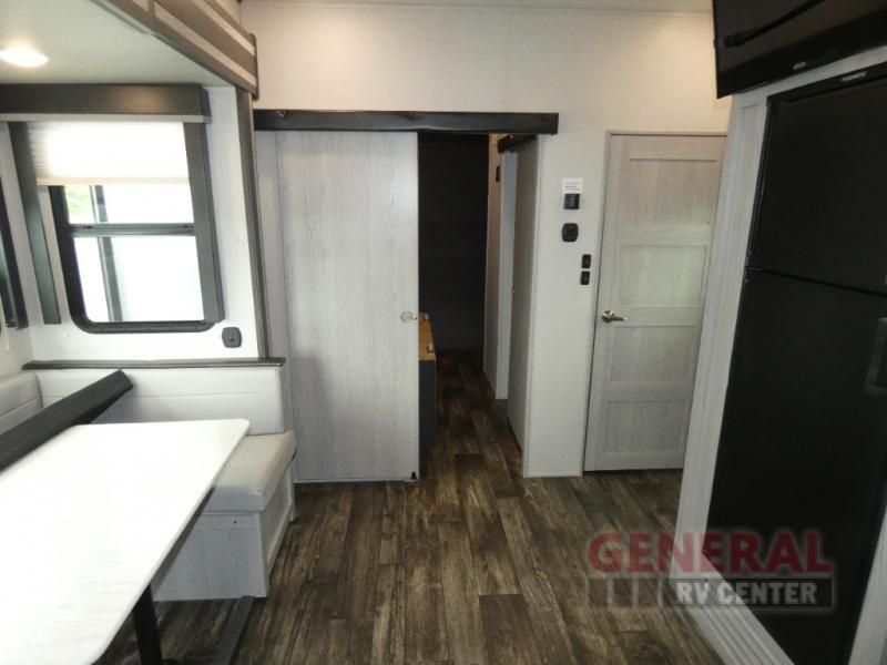 Measuring approximately 28 feet in length, the Fuzion Impact Edition 29V is designed to accommodate up to six people comfortably. Whether you're traveling with family or friends, everyone will have a cozy place to rest. The RV's impressive fuel capacity of 114 liters ensures you can venture further without frequent stops, allowing you to focus on the journey ahead. Weighing in at 3,696 kilograms, this toy hauler is built for durability and ease of towing, making it a reliable choice for all your adventures.