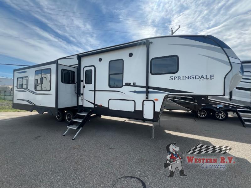 Introducing the 2021 Keystone RV Springdale 253FWRE Fifth Wheel, a remarkable blend of comfort, functionality, and modern design. This meticulously crafted RV is designed to elevate your travel experiences, offering a spacious and luxurious retreat on wheels. With its three slide-outs, this model provides ample living space, ensuring that you and your loved ones can enjoy every journey in utmost comfort.