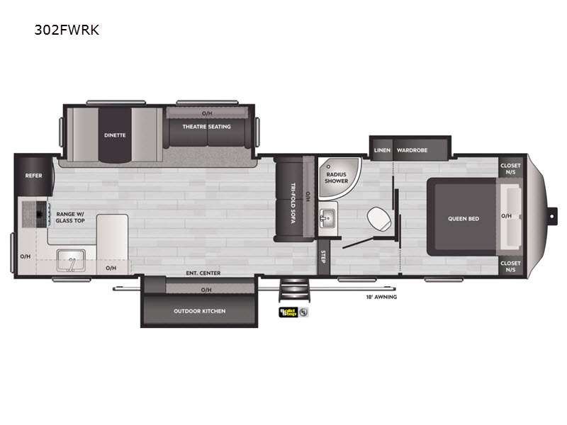 Inside, the Springdale 302FWRK can comfortably sleep up to five people, making it ideal for family getaways or trips with friends. The thoughtfully designed floor plan includes a cozy master bedroom, a convertible sofa, and a dinette that transforms into an additional sleeping area. The well-equipped kitchen features modern appliances and plenty of counter space, allowing you to prepare meals with ease. The living area is perfect for unwinding after a day of adventure, with ample seating and entertainment options.
