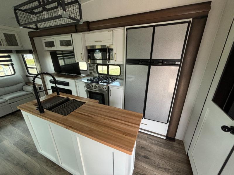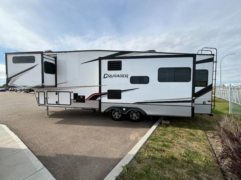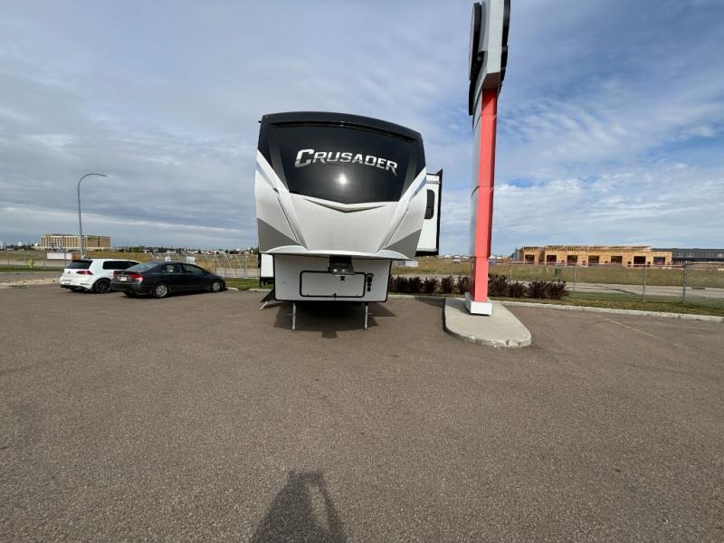 Weighing in at around 5,046 kilograms, this fifth wheel is engineered for stability and ease of towing, allowing you to travel with confidence. The Crusader 335RLP boasts a well-appointed interior, featuring high-quality furnishings and modern amenities that cater to your every need. From the fully equipped kitchen to the inviting living space, every detail has been thoughtfully crafted to enhance your RV experience. Whether you're preparing a gourmet meal or unwinding after a day of exploration, this RV offers the perfect setting for both.