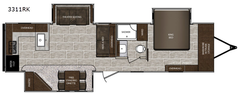 Inside, the LaCrosse 3311RK comfortably sleeps four, making it perfect for family getaways or a cozy escape with friends. The well-appointed interior features a modern kitchen equipped with top-of-the-line appliances, a comfortable dining area, and a relaxing living space. The thoughtful layout ensures that every inch of the trailer is utilized efficiently, providing you with all the comforts of home while on the move.