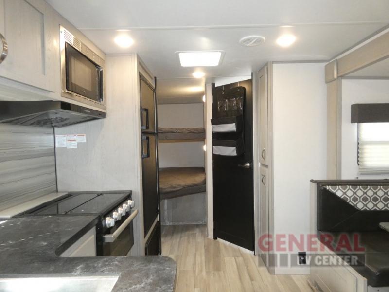 Inside, you'll find a cozy setup that can comfortably sleep up to 8 people, making it perfect for family trips or getaways with friends. The smart layout includes a queen bed, double bunk beds, and a convertible dinette and sofa, ensuring everyone has a comfy spot to rest. The kitchen is fully equipped with modern appliances, so you can whip up your favorite meals on the road. And let's not forget the entertainment center, perfect for movie nights or catching up on your favorite shows.