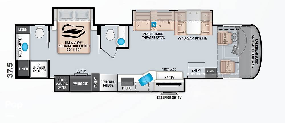 The Thor Motor Coach Palazzo 37.5 Class A is not only about luxury and comfort but also about practicality and convenience. With ample storage space, modern amenities, and advanced safety features, this RV ensures that you travel in style without compromising on functionality. Whether you're embarking on a cross-country road trip or a weekend getaway, the Palazzo 37.5 is your perfect companion, offering an unparalleled travel experience that combines the freedom of the open road with the comforts of a well-appointed home.