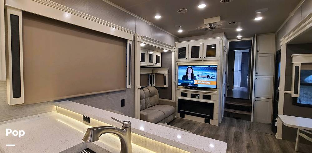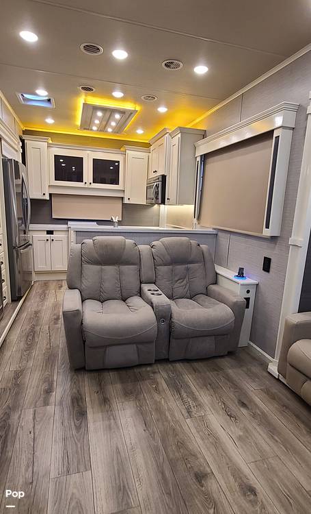 Step inside to discover a thoughtfully designed interior that exudes elegance and functionality. The living area is adorned with high-quality furnishings and features a well-appointed kitchen equipped with modern appliances, ensuring that meal preparation is both convenient and enjoyable. The sleeping quarters are designed to provide a restful sanctuary, with plush bedding and ample storage space to accommodate your travel essentials. The RV's sophisticated design is complemented by state-of-the-art amenities, including climate control and entertainment systems, ensuring a comfortable and enjoyable stay regardless of the destination.