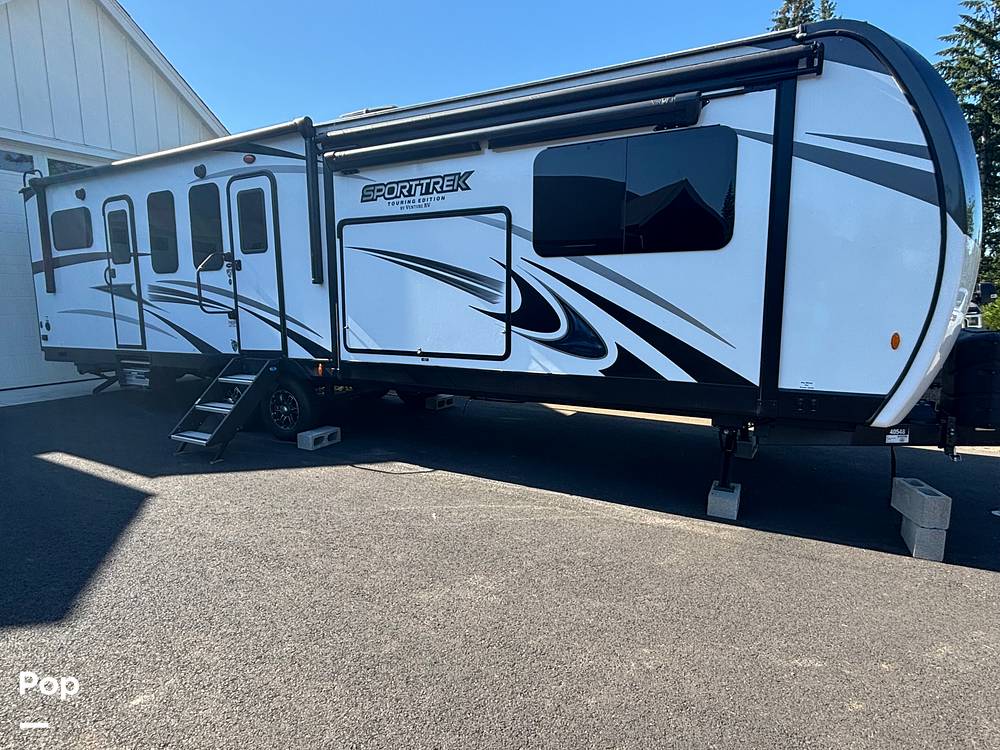 Discover the ultimate travel companion with the 2021 Venture RV SportTrek 333VFK Travel Trailer, a perfect blend of comfort, style, and functionality. Measuring an impressive 31 feet in length, this travel trailer is designed to offer you a luxurious home-away-from-home experience, whether you're embarking on a weekend getaway or an extended road trip. With its sleek design and modern amenities, the SportTrek 333VFK is your ticket to adventure without sacrificing the comforts of home.
