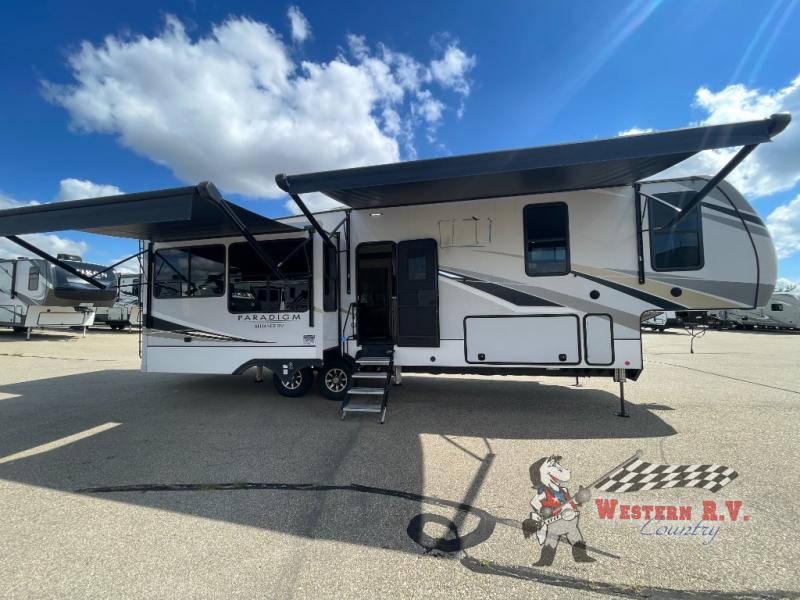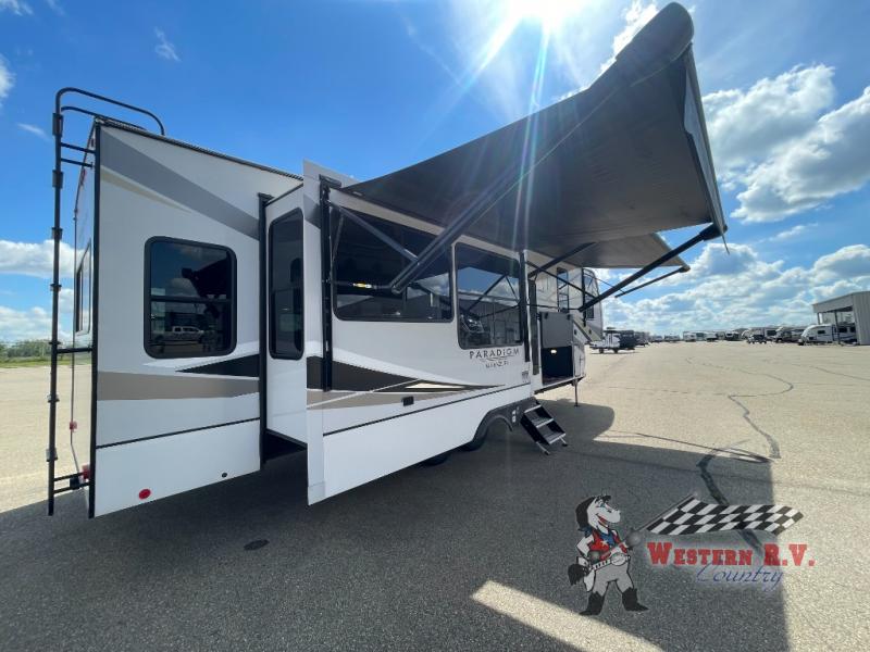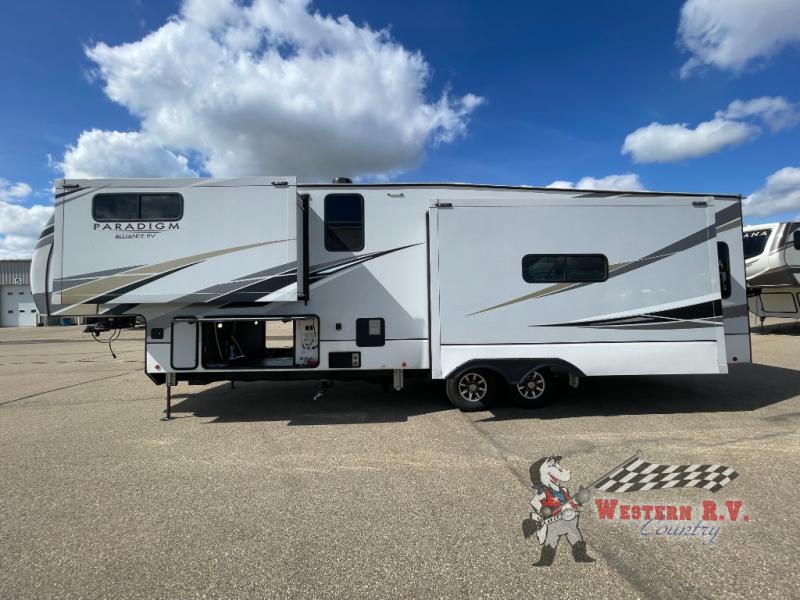 Introducing the 2022 Alliance RV Paradigm 340RL Fifth Wheel, a pinnacle of luxury and innovation in the world of recreational vehicles. This meticulously crafted RV is designed for those who seek both comfort and adventure, offering a perfect blend of modern amenities and robust performance. With an impressive length of 37 feet, the Paradigm 340RL provides ample space for relaxation and entertainment, making it an ideal choice for extended travels or weekend getaways.