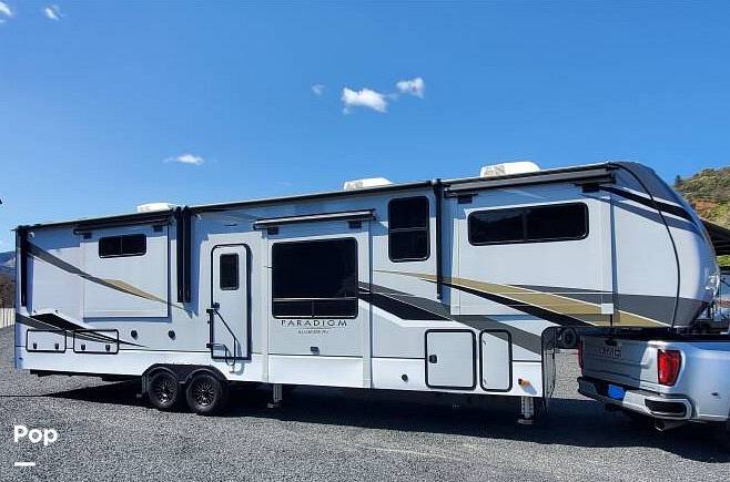 Discover the ultimate in luxury and comfort with the 2022 Alliance RV Paradigm 385FL Fifth Wheel! Perfect for family adventures or a getaway with friends, this stunning RV is designed to sleep up to five people, ensuring everyone has a cozy spot to rest after a day of exploration. With a spacious length of 34 feet, this RV offers ample room for relaxation and entertainment, making it your home away from home.