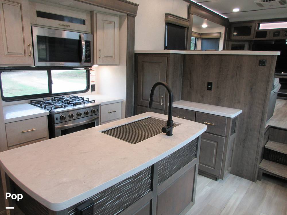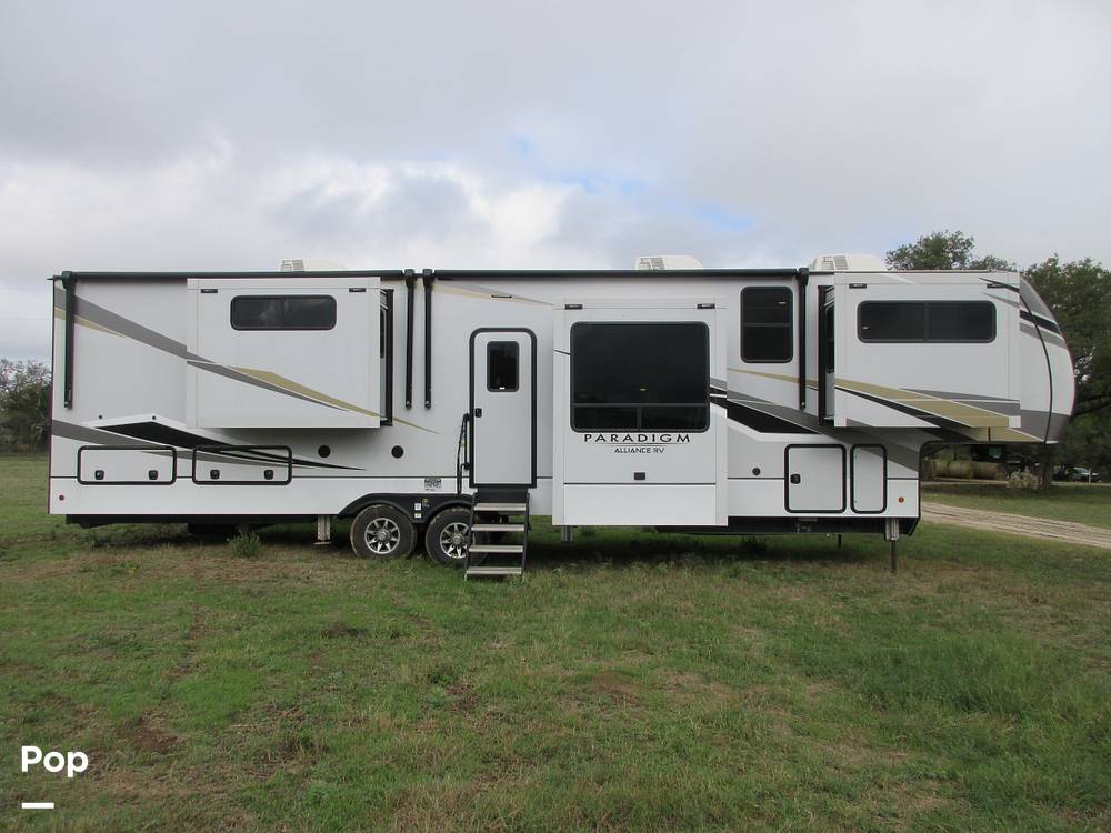 The RV's thoughtful design extends to its sleeping quarters, ensuring everyone has a restful night's sleep. The master bedroom offers a serene escape with a comfortable bed and ample storage. Additional sleeping options include convertible sofas and a loft area, making it ideal for families or groups of friends. With its top-notch amenities and attention to detail, the 2022 Alliance RV Paradigm 385FL Fifth Wheel is more than just an RV; it's your home away from home. Embark on your next adventure with confidence and style in this exceptional vehicle.