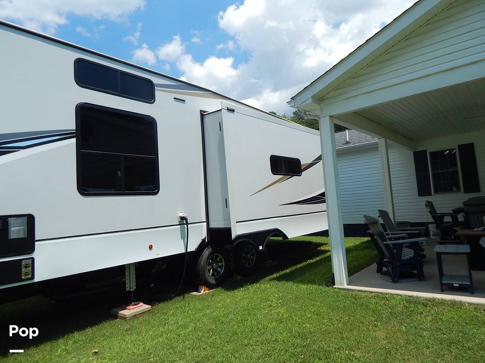 Introducing the 2022 Alliance RV Paradigm 390MP Fifth Wheel, a luxurious and spacious haven on wheels designed for those who seek the ultimate travel experience. This meticulously crafted RV offers a perfect blend of comfort, style, and functionality, making it an ideal choice for families or groups looking to explore the great outdoors without sacrificing the comforts of home. With a generous length of 35 feet, this RV provides ample space for relaxation and entertainment, ensuring every journey is as enjoyable as the destination.