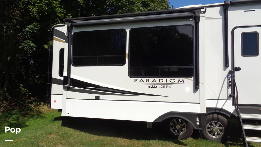 Introducing the 2022 Alliance RV Paradigm 390MP Fifth Wheel, a pinnacle of luxury and comfort designed for the discerning traveler. This exceptional RV offers a spacious and thoughtfully designed interior, capable of accommodating up to six guests, making it ideal for family adventures or a getaway with friends. With a length of 35 feet, this fifth wheel provides ample space without compromising on maneuverability, ensuring a seamless travel experience.