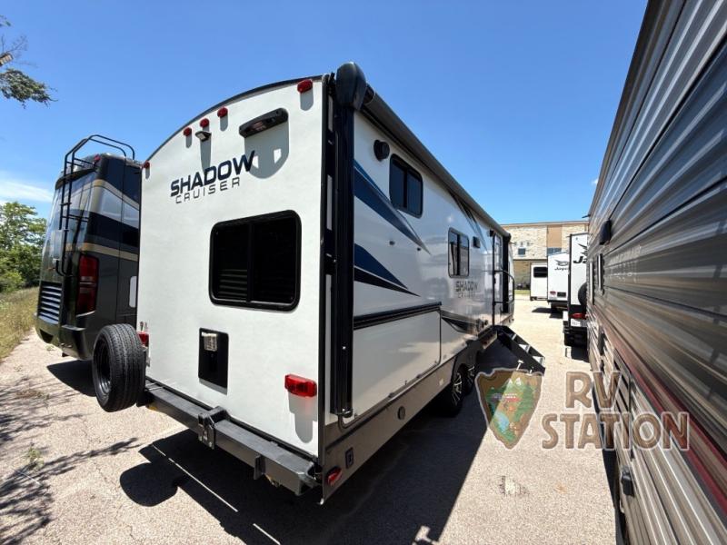 Step inside and be greeted by a spacious interior that boasts a modern design and high-quality finishes. The Shadow Cruiser features a well-appointed kitchen equipped with a large refrigerator, microwave, and three-burner stove, ensuring you can prepare meals with ease. The cozy dinette and plush seating area provide a perfect spot for family meals or game nights. Sleeping arrangements are a breeze with a queen-sized bed in the master suite, double bunk beds, and a convertible sofa, comfortably accommodating up to eight people. The bathroom is thoughtfully designed with a roomy shower and all essential amenities, ensuring convenience on the road.