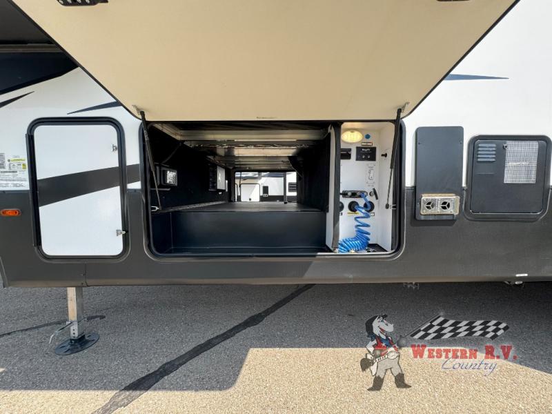 The Yukon 320RL features three expansive slide-outs, ingeniously maximizing the living space to provide an open and airy environment. Inside, you'll find accommodations for up to five people, making it ideal for families or small groups. The thoughtfully designed interior includes a spacious living area, a fully equipped kitchen, and a cozy sleeping arrangement, ensuring everyone enjoys a restful night. The high-quality finishes and modern amenities reflect a commitment to excellence, offering a home-like atmosphere wherever you roam.