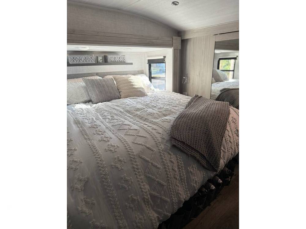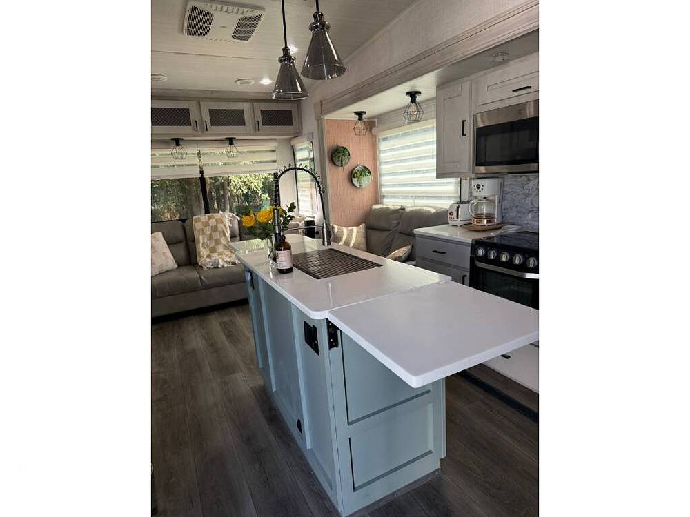 Step inside and be greeted by a beautifully designed interior that combines style with functionality. The RV features a cozy living area, a fully equipped kitchen, and multiple sleeping options to accommodate everyone comfortably. The kitchen comes with modern appliances, making meal preparation a breeze, while the living area provides a perfect spot for relaxation after a day of adventure. The thoughtful layout ensures that everyone has their own space to unwind and enjoy the trip.
