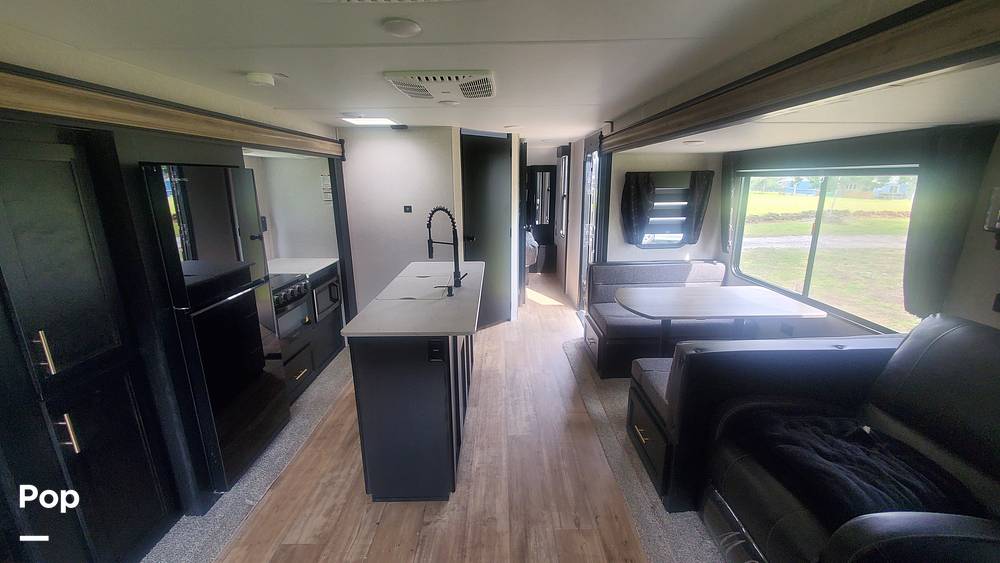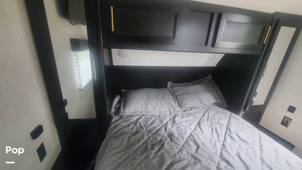 The interior of the Cherokee 274WK is thoughtfully crafted to maximize both functionality and style. The spacious living area is equipped with modern amenities, including a fully-equipped kitchen with a refrigerator, stove, and microwave, ensuring you have everything you need to prepare meals on the go. The sleeping arrangements are versatile, featuring a cozy master bedroom and additional sleeping options in the form of convertible furniture, making it ideal for families or groups. The bathroom is well-appointed with a shower, sink, and toilet, providing all the conveniences of home.