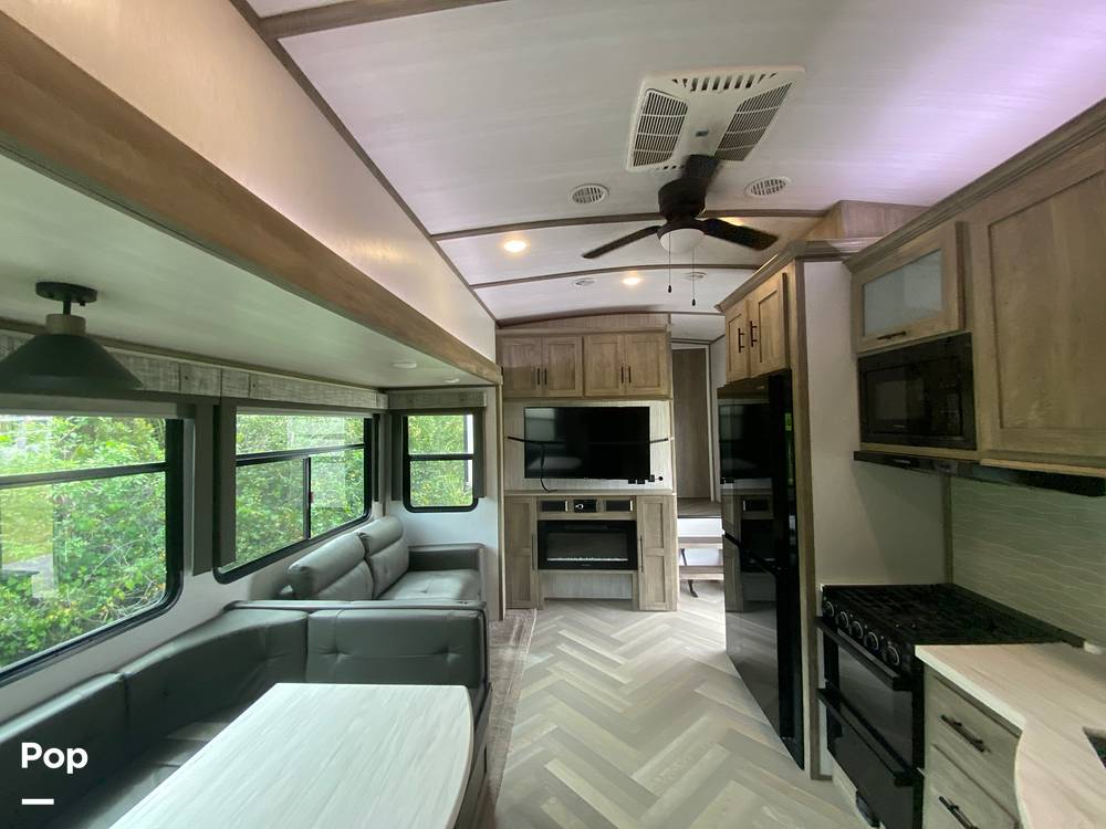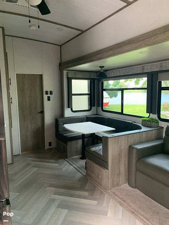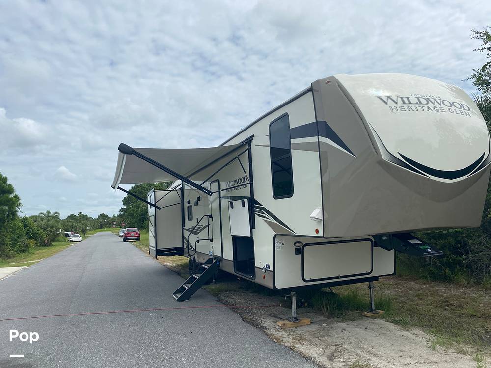 Additional features include a spacious bathroom with a shower, ample storage throughout, and climate control to keep you comfortable in any weather. The exterior boasts an awning for outdoor enjoyment and storage compartments for all your travel essentials. Whether you're embarking on a cross-country journey or a weekend getaway, the 2022 Forest River Heritage Glen 356QB Fifth Wheel is your ticket to unforgettable adventures. Don't miss the opportunity to own this exceptional RV that combines style, comfort, and practicality.
